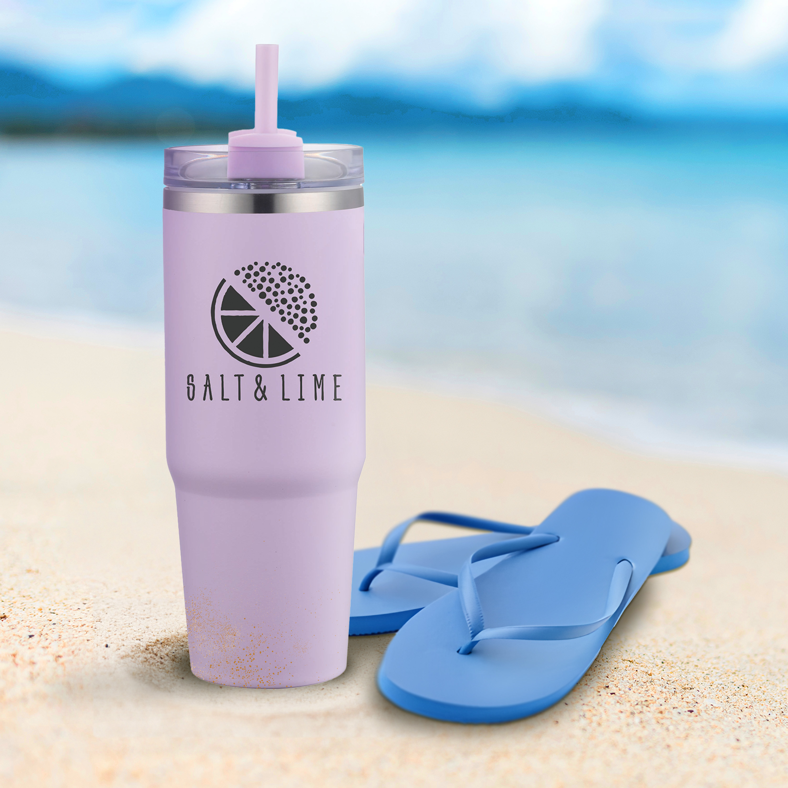 People will want to take this 30 oz Travel Mug everywhere. The beautiful powder coated finish is available in many fun and popular colors. The double wall vacuum insulation keeps drinks hot or cold. Screw the lid on to accommodate left or right handed people. The lid swivels to 3 positions so you can use the straw, the drink opening or close the lid entirely. The straw opening keeps straws in place and prevents splashes. BPA Free, Lead Free and FDA Compliant.