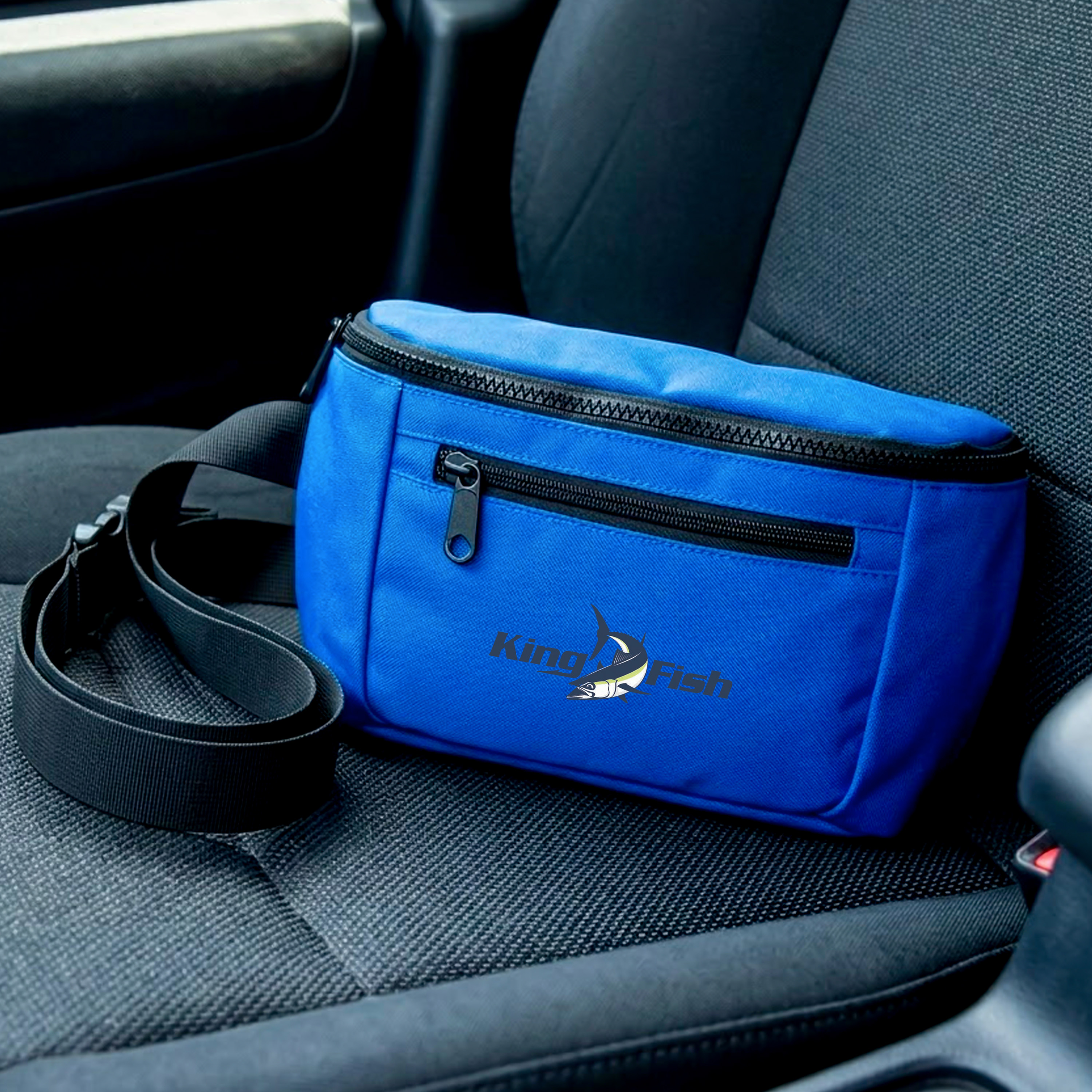 This belt bag is perfect for transporting many goods, and the two compartments and outside pocket making it easy to keep your items organized. The fanny pack's size and shape make it excellent for travel. With a side release buckle and an adjustable 46" webbed strap, this bag can be worn as a hip pack, cross-body bag, or chest bag. This environmentally friendly belt bag is made of recycled polyester (rPET), which is produced by melting down plastic water bottles and other materials.