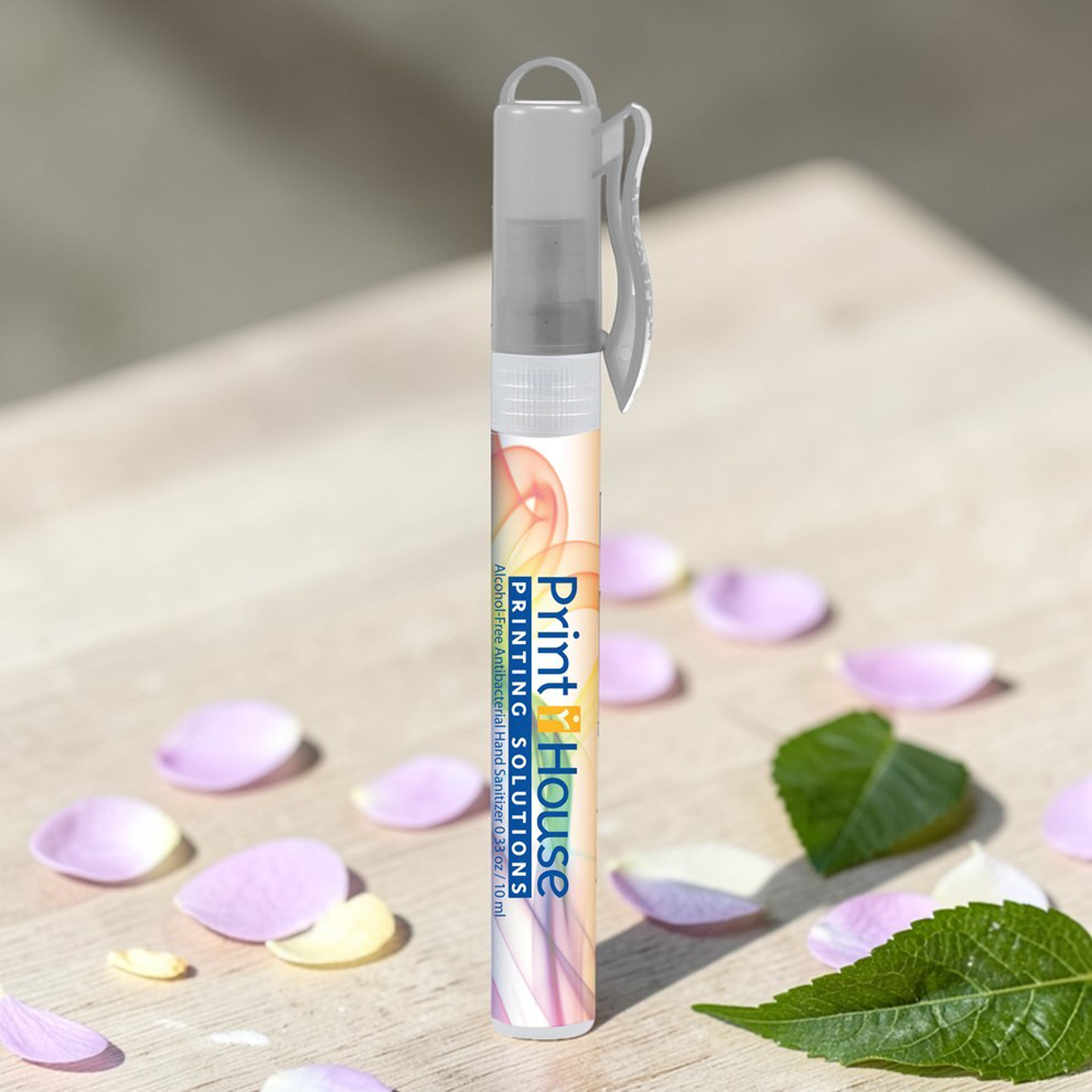 Rid yourself of germs with this alcohol-free Sani-Mist antibacterial hand sanitizer. This 0.33 oz / 10 ml sanitizing spray makes the perfect tool for anyone looking to fight germs while at home or on the go. This sanitizer is a great idea for gifts, health clinics and events. Includes full color process decal for your customized retail look.